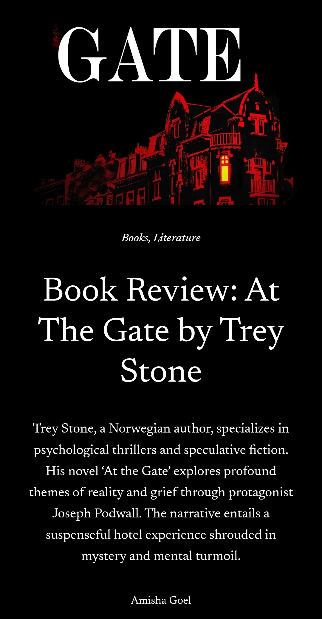 Amisha Goel over at The Reading Palette has just written a fantastic review of my psychological thriller, At The Gate, and it’s one of the best ones I’ve ever read! You’ll check it out, won’t you?