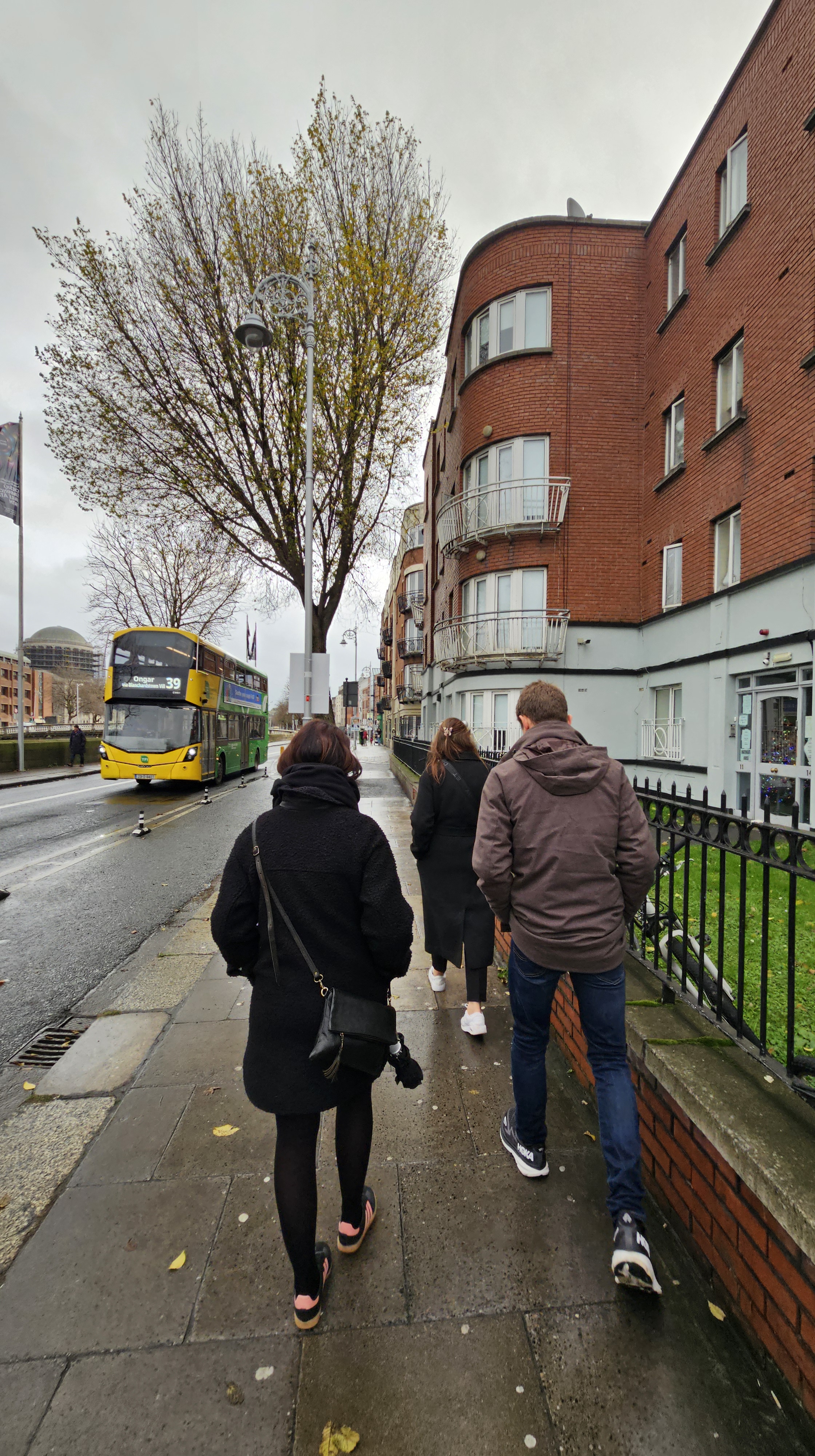 Deretter var det tid for en ad hoc by vandring mens vi ventet på omvisning i Guiness Storehouse. Det var grått, trist og skittent i Dublin’s gater, men det blåste heldigvis, så det føltes hjemmekoselig ut allikevel.